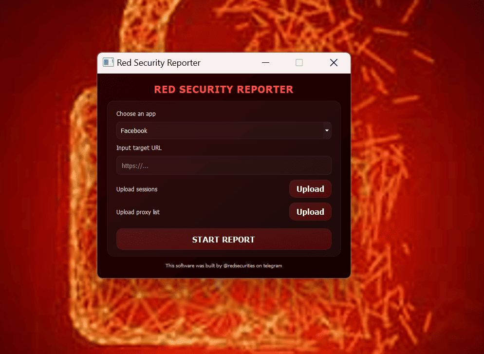 A powerful report ban tool for mass reporting accounts that violates platform policies. Developer > https://t.me/redsecure